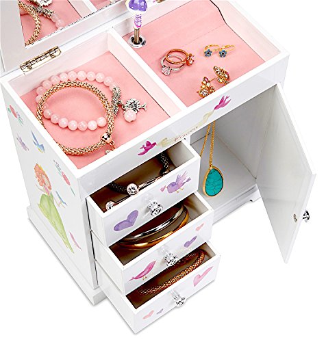 - Ideal para almacenar joyas de niñas, incluyendo pulseras, collares, anillos y otros tesoros preciosos.