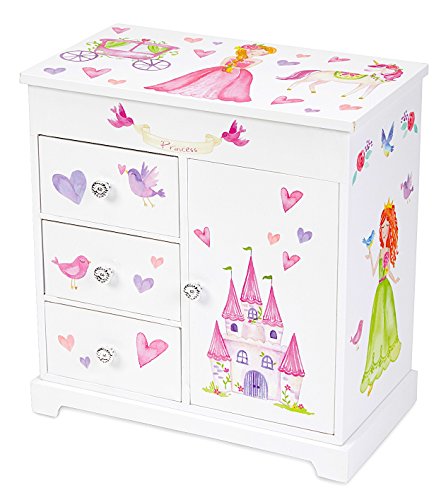 Jewelkeeper - Joyero Musical Decorado de Unicornios y Castillo, con 3 Cajones Extraíbles - Melodía de la Danza del Hada de Azúcar