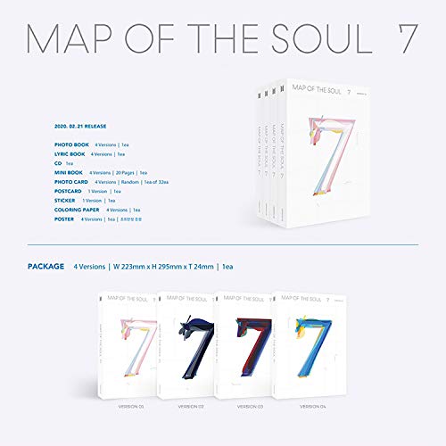BTS Album - MAP OF SOUL : 7 [ 3 ver. ] Package + Photo Book + Lyric Book + CD + Mini Book + Photo Card + PostCard + Sticker + Coloring Paper