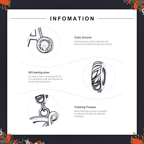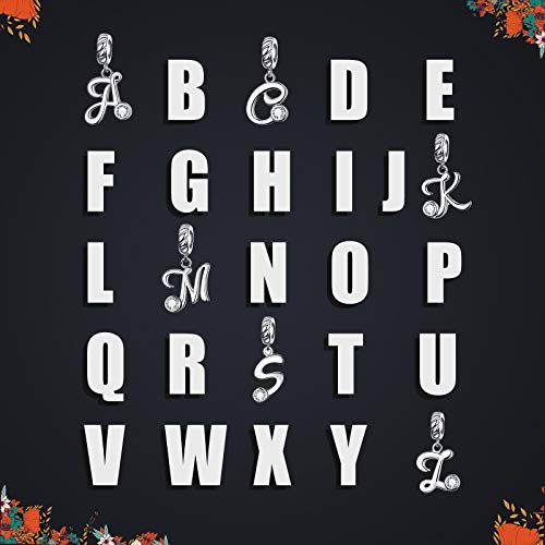 LaMenars Letras Colgantes de Alfabeto A-Z Abalorios Charms Originales Plata de Ley 925 con Circonita Cúbica para Pandora & Europeo Pulseras Brazaletes Collares para Mujer (Letter L)