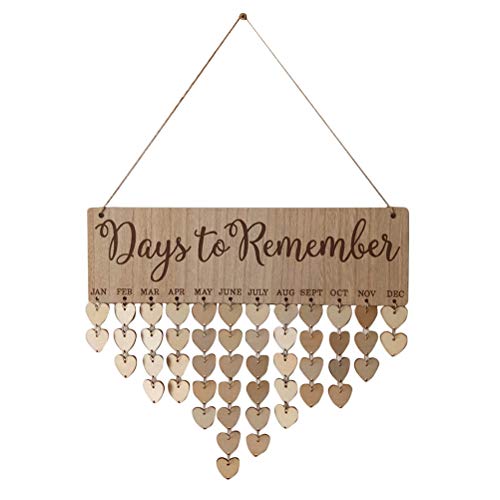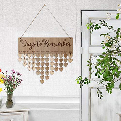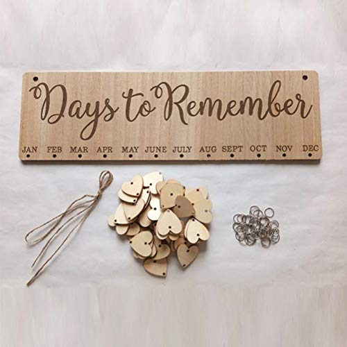 BESTOYARD Days to Remembe - Placa de madera para colgar, calendario de cumpleaños con discos en forma de corazón