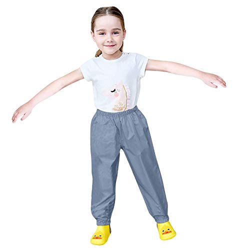 Vexiangni Pantalones de lluvia unisex para niños, impermeables, transpirables, sin forro, con rayas reflectantes, para la lluvia, Gris F., S