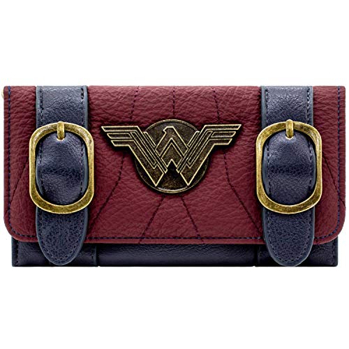 Cartera de DC Wonder Woman Placa de Plata Hebilla de Correa Rojo