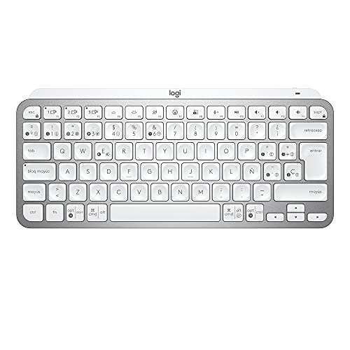 Logitech MX Keys Mini Teclado Inalámbrico Minimalista, Compacto, Bluetooth, Retroiluminado, USB-C, Compatible con Apple macOS, iOS, Windows, Linux, Android, de Metal - Gris claro