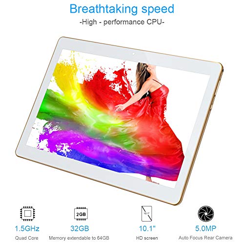 Tablet 10,1 Pulgadas Android 8.0, Padgene Android Tableta PC Quad Core IPS HD Pad con 2G+32G, Ranuras para SIM Dual Cámara Dual WiFi/3G Desbloqueado Bluetooth 4.0 Función de Teléfono GPS Google