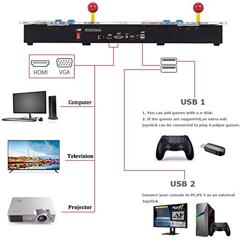 - [Nuevo sistema]: nuestro Pandoras Box 2700 en 1, todos los juegos de arcade súper retro están preinstalados, puedes jugar después del encendido, simple y conveniente. La combinación de esta máquina clásica de juegos de arcade y el último 3D moderno definitivamente te traerá recuerdos interminables y experiencias increíbles.