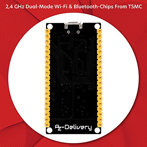 - ✅ Novedad en el mercado: AZ-Delivery Módulo Placa de Desarrollo ESP32 NodeMcu WiFi CP2102 tiene el potente Microcontrolador ESP32 instalado.