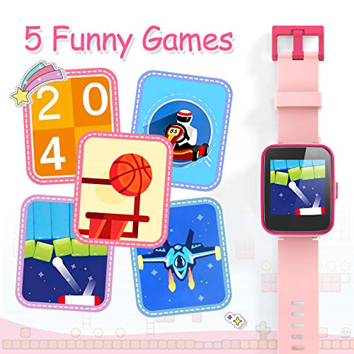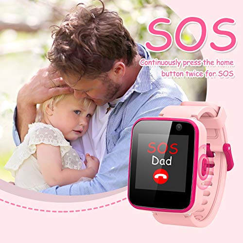 AGPTEK Smartwatch Niños, 8GB Reloj Inteligente de MP3 Música 1.54 Pantalla Táctil en Color con Llamada SOS Linterna Cámara MP3 Juegos Regalo para Navidad Cumpleaños, Rosa