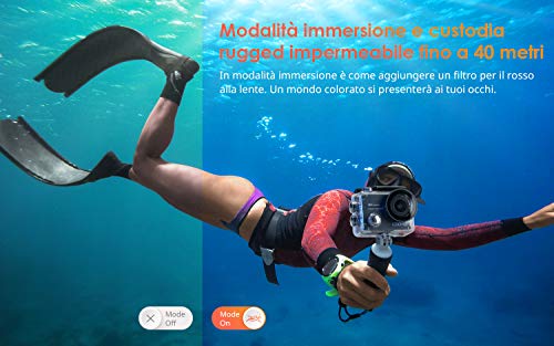 - - 【Wi-Fi & Action cam impermeable 40M】- Simplemente desliza y toque la pantalla para buscar y activar el Wi-Fi en la cámara deportiva. Puedes reproducir / descargar / grabar vídeos o tomar fotos en tus dispositivos y la APP dedicada "iSmart DV" facilita el uso compartido de tus maravillosos momentos con el mundo. Es totalmente resistente al agua hasta 131 pies (40 m) gracias a una funda resistente al agua. El modo de buceo ayuda a optimizar el color bajo el agua.
