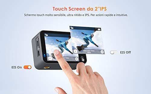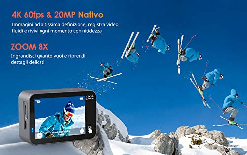 COOAU Cámara Deportiva 4K 60FPS 20MP Wi-Fi(pantalla táctil con zoom 8X Nuevo EIS Anti-Shake, Estuche impermeable para cámara subacuática de 40 m, Micrófono externo ajustable, 2x1350mAh Baterías)