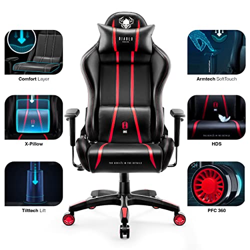 Diablo X-One 2.0 Silla Gaming Gamer Oficina Sillon de Ordenador Reposabrazos Ajustables Cuello/Cojín Lumbar Diseño Ergonómico Rojo Normal (L)