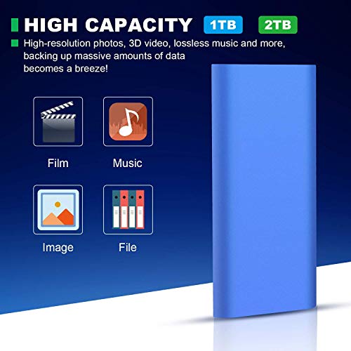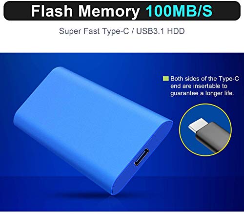 Disco Duro Externo Disco Duro Externo portátil de 2TB Tipo-C/USB 3.1 Disco Duro portátil de Alta Velocidad Disco Duro Externo para Mac, PC, Laptop (2TB, Blue)