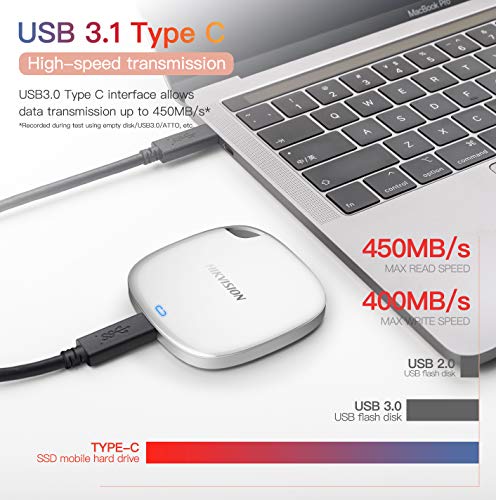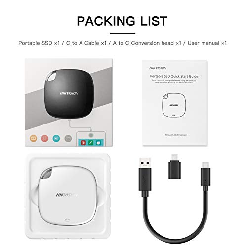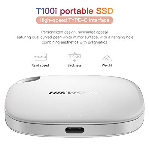 HIKVISION T100I Disco Duro Externo SSD portátil 1TB - hasta 540MB/s Velocidad de Lectura,USB 3.2/USB 3.1 Tipo C– Unidad de Estado sólido Externa (Blanco)