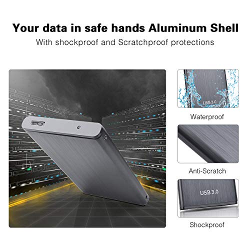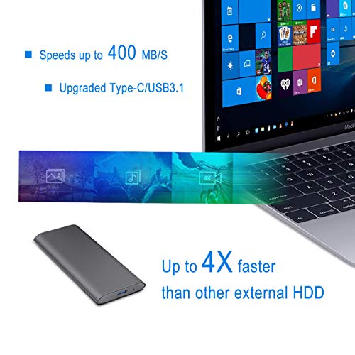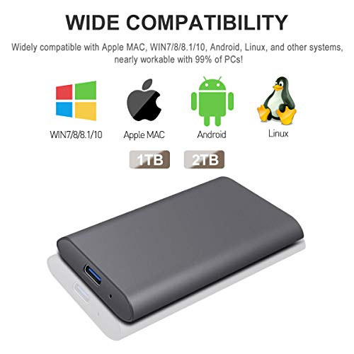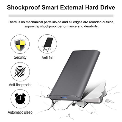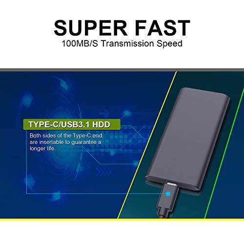 - Supervelocidad tipo C 3.1 USB / cuerpo duradero: disco duro externo equipado con conector de tipo C a tipo C y USB 3.1 hace más fácil de operar. También funciona con USB3.0 y USB 2.0 para ofrecer velocidades de transferencia ultrarrápidas. Fabricado con aleación de aluminio resistente con estructura sólida y diseño cepillado, que ofrece una gran durabilidad, rendimiento a prueba de golpes, disipación de calor y cómodo, simple, ligero se puede instalar en cualquier bolsa para llevar a cualquier lugar.
