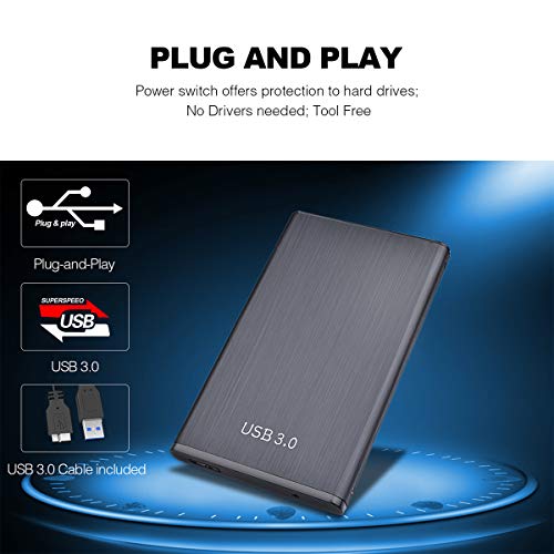 - Plug and Play/Smart EXTERNA DURA DURA INTELIGENTE: no es necesario instalar ningún software, solo plug and play hace que sea más fácil de operar. El disco duro externo de Portabel es lo suficientemente inteligente como para indicar la luz cuando está enchufado y aslosupports duermen automáticamente si no funciona más de 10 minutos.