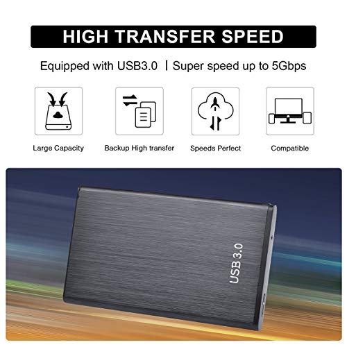 - Transferencia de datos ultrarrápida: USB 3.0 de alta velocidad de transferencia de 10 Gbps, ultra delgado y ligero. Disco duro externo portátil. Se ejecuta directamente desde un puerto USB 3.0 o USB 2.0, no necesita fuente de alimentación externa.