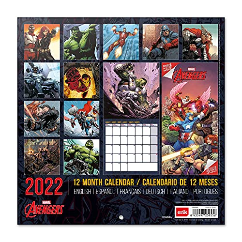 - CALENDARIO CON PÓSTER DE REGALO - Nuestro nuevo calendario Grupo Erik va desde Enero de 2022 a Diciembre 2022 cada mes con una ilustración inspirada en la pelicula. Además cuenta con un póster Marvel : Los Vengadores para decorar tú habitación ¡Este calendario anual 2022 no le falta detalle!