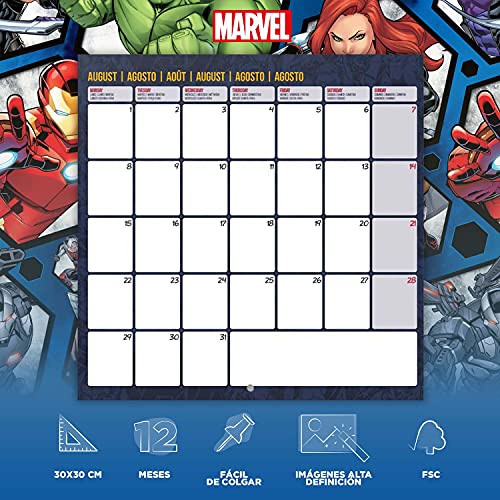 Calendario Los Vengadores 2022 incluye póster de regalo - Calendario Marvel - Calendario 2022 pared │ Calendario anual 2022 pared - Calendario mensual - Producto con licencia oficial