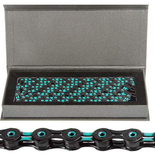 KMC DLC 11 Chain Black Cadena, Unisex, Negro/Celeste, 1/2” x 11/128”