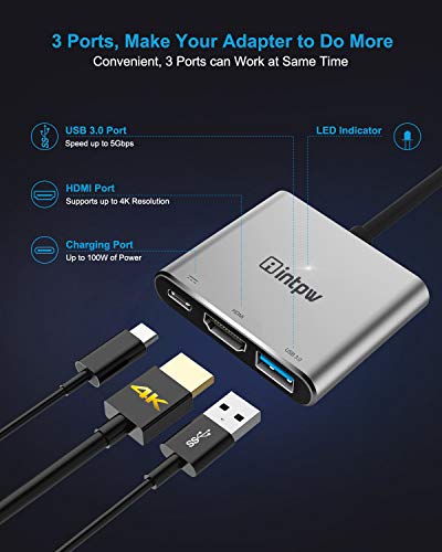 - ALTA VELOCIDAD, ALTA DEF - El adaptador INTPW USB tipo C a HDMI admite hasta 1080p a 60Hz o 4K UHD (3840x2160) a 30Hz, lo que permite audio y video nítidos, y admite velocidades de transferencia de datos de 5 Gbps con puerto USB 3.0.