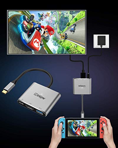 Adaptador USB C a HDMI, concentrador Adaptador multipuerto USB 3.1 Tipo C a HDMI con Puerto USB 3.0, Puerto de Carga PD Tipo C Compatible con MacBook Air/iPad Pro/Nintendo Switch
