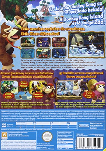 - Sumérgete en los distintos escenarios del mundo de Donkey Kong: avanza entre molinos y canales ascendiendo montañas, explora cavernas sumergidas en el mar, afronta aguas heladas o explora un bosque frutal lleno de sorpresas pegajosas