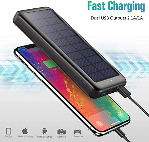 - ✅【26800mAh de Gran Capacidad】Esta batería externa no solo se puede cargar, sino que también tiene la función de carga solar, no preocuparse de que el equipo se quede sin energía. La batería incorporada de 26800 mAh es suficiente para cargar iPhone XS 6-8 veces, Samsung Galaxy S10 5-6 veces y iPad Pro 2 veces.