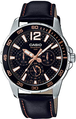 Casio MTD330L-1A3V Men's Marine Sport Leather Band 50M Multifunction Black Dial Watch