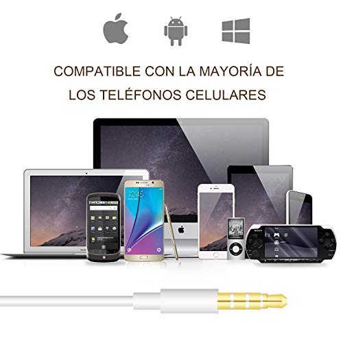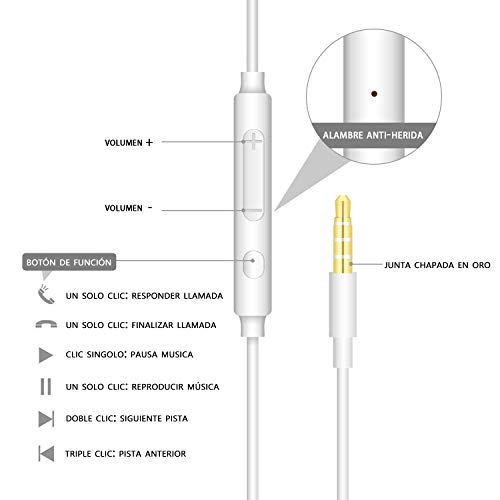 - MICRO y CONTROL - Auricular Estéreo de 3,5 mm con botón de control remoto y micrófono para la comunicación por móvil