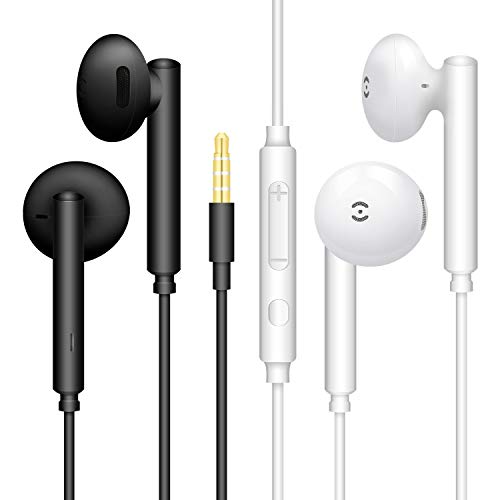 【2Pares Negro + Blanco】 Auriculares MAS CARNEY WH6 estéreo con micrófono y Control de Volumen Compatible con teléfono móvil, computadora, computadora portátil, MP3