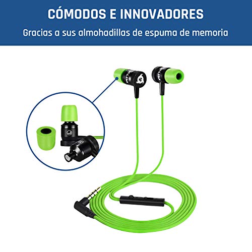 KLIM Fusion - Auriculares con micrófono para móvil + Garantía 5 años + Innovadora Espuma de Memoria + Jack 3,5 mm + Compatibles con Smartphone, Tablet, Consola, PC - Nueva Versión 2022 - Verde