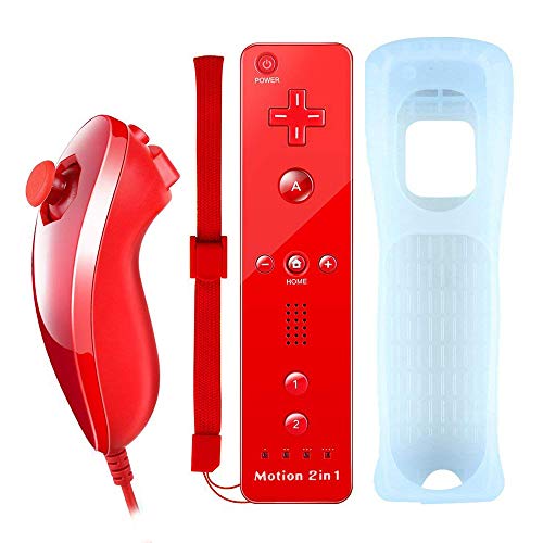 COOLEAD 2 en 1 Motion Plus Mando a Distancia y Nunchuk para Wii y Wii U Control Remoto Motion Plus y Nunchunk con Funda de Silicona y Muñequera (Producto de Terceros)
