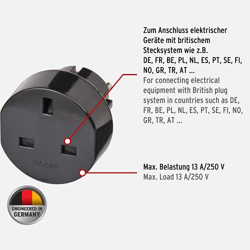 Brennenstuhl adaptador de enchufe de viaje para GB - enchufe britanico (adaptador para enchufar dispositivos inglés en en el sistema de conector de tierra) negro