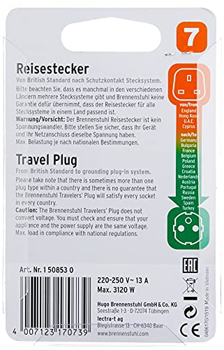 - Volumen de suministro: 1x adaptador de viaje para enchufes inglés a conector de tierra - en la calidad de Brennenstuhl