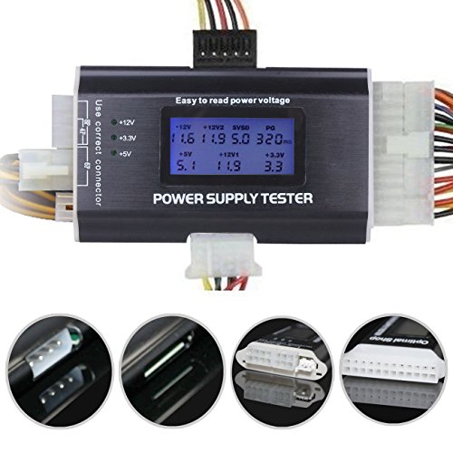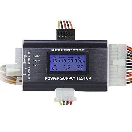 - Este comprobador de fuente de alimentación es la herramienta definitiva para todas las personas en reparación de ordenador. Viene con un probador de fuente de alimentación ATX 8 en 1 que sale los niveles de voltaje de sus conectores a una pantalla de 1,8 pulgadas que está integrada en el dispositivo. Puede detectar con precisión problemas con fuentes de alimentación y evitar daños a su placa base. Prueba los conectores de 20, 24 pines, 4 pines, SATA, Floppy Power, PCI-e, 4 pines, ATX12 V y 8 pin