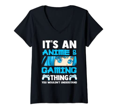 Mujer es un anime y juego de cosas Anime Merch Camiseta Cuello V