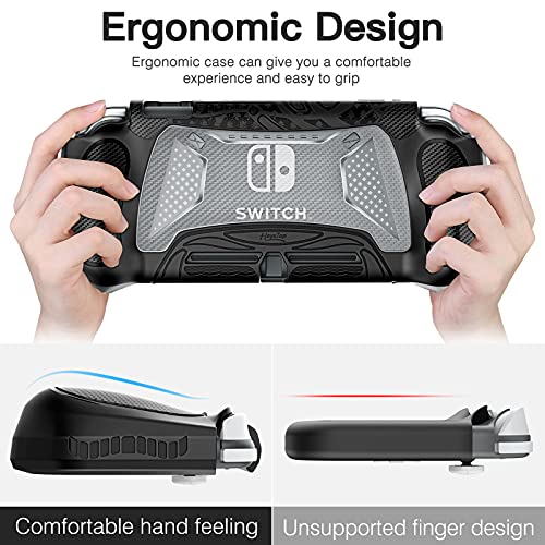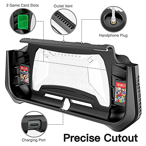 HEYSTOP Carcasa para Nintendo Switch Lite, Funda para Nintendo Switch Lite con 2 Ranura de Tarjetas de Juego y Protector de Pantalla para Switch Lite Console y Grips con Agarres para el Pulgar - Negro