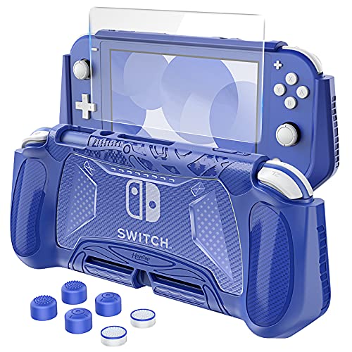HEYSTOP Carcasa para Nintendo Switch Lite, Funda para Nintendo Switch Lite con 2 Ranura de Tarjetas de Juego y Protector de Pantalla para Switch Lite Console y Grips con Agarres para el Pulgar - Azul