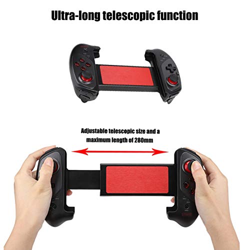 - 【Diseño Ergonómico Cómodo y Soporte Retráctil】El mando inalámbrico de Android es el agarre texturizado hecho de plástico de calidad, por lo que se siente cómodo en las manos. El soporte retráctil puede soportar un ancho de teléfono móvil de 3-6 pulgadas.
