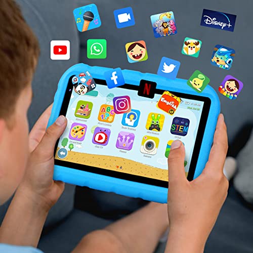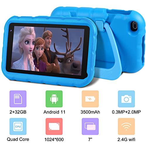Tableta para Niños 7 Pulgadas Oangcc Android 11 Go HD Tablets Infantil Certificado por Google GMS,2GB + 32GB ROM(TF 128G),Quad Core/WiFi/Control Parental/Kid-Proof Funda Tablet/Niños Educativo -(Azul)