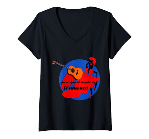 Mujer Sueno que el mundo es flamenco - Spain Camiseta Cuello V