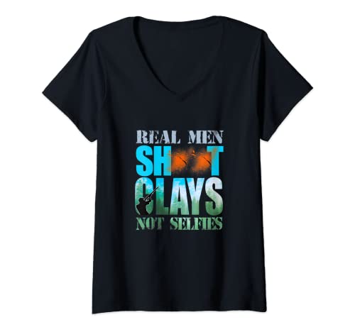 Mujer Sporting Arcillas Golf Con Una Escopeta -Skeet Trap Tiro De Arcilla Camiseta Cuello V