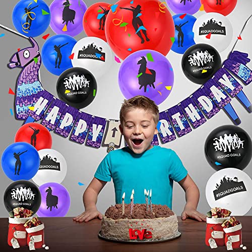 - Favores perfectos para fiestas temáticas de jugador: estos globos son perfectos para decorar fiestas de cumpleaños temáticas de juegos para niños y bebés. Crea recuerdos inolvidables con familiares y amigos. Fácil de usar: el banner de feliz cumpleaños viene premontado. Solo tome un poco de tiempo para atar la decoración colgante e inflar los globos para decorar su hogar y crear un ambiente de fiesta feliz. DISEÑADO PARA VENTILADORES: si eres un gran fanático que organizará una fiesta inspirad