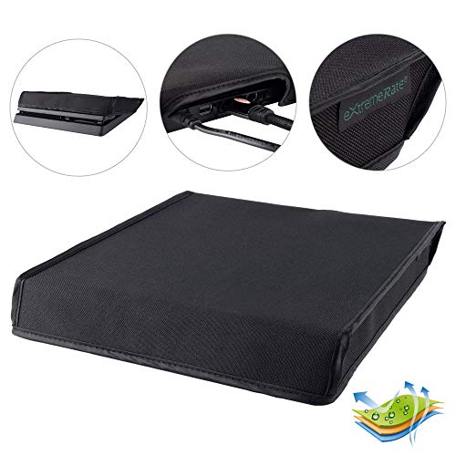 eXtremeRate Prueba de polvo para PS4 Consola Funda Cubierta Protectora Horizontal Diseño de doble capa Forro Corte Preciso Fácil de Acceso los cables Guardapolvo para Playstation 4 Slim Consola(Negro)