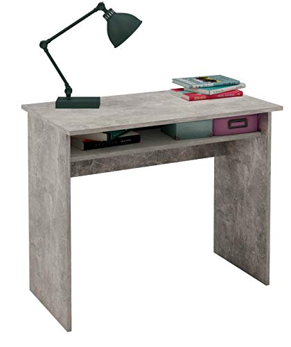 Samblo Sora Escritorio con balda Gris Cemento, Melamina, 90cm Ancho