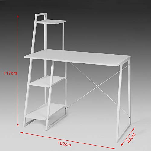 SoBuy Mesa de Escritorio, Mesa de Ordenador con Tres Estantes,Color Blanco,FWT29-W,ES (Mesa)