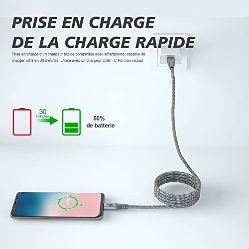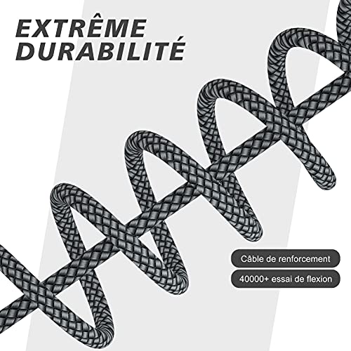 - [Súper durabilidad]: La fuerte fibra,el material más suave, fuerte y duradero, puede aumentar la fuerza de tracción en un 200%. Puede soportar más de 10,000 pruebas de flexión. La carcasa de aluminio de alta calidad hace que el cable sea más duradero y el cable trenzado de nailon tipo C añade durabilidad adicional y no se enreda.