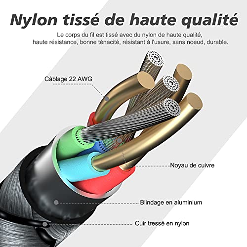- ✅【Materiales de alta calidad, duraderos】:Carcasa de nailon, resistente fibra militar. El producto ha superado más de 40.000 pruebas de flexión y más de 15.000 pruebas de inserción y extracción. Equipado con juntas flexibles y conectores de aleación de aluminio soldados con láser 3D para hacer que el cable sea más duradero. El producto puede soportar una fuerza de tracción de más de 50 kg sin preocuparse por la rotura del producto.