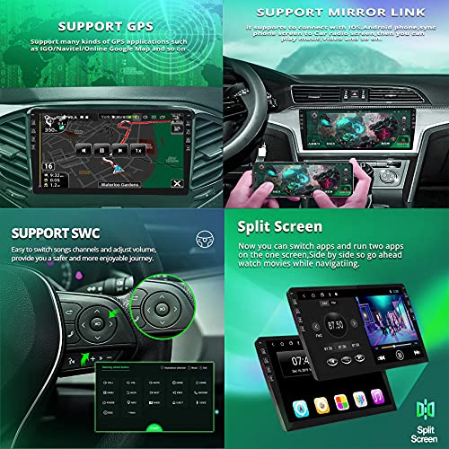 - [Funciones básicas] Este estéreo para automóvil es compatible con navegación GPS / Radio FM AM para automóvil / Reproductor multimedia / Reproductor de música / AV-OUT / Llamadas manos libres Bluetooth / Control del volante / Mirror Link / Park Assist / Navegación web / Comunicación en línea / Carplay / Cámara DVR (opcional), OBD2 (opcional), DAB (opcional), TPMS (opcional).