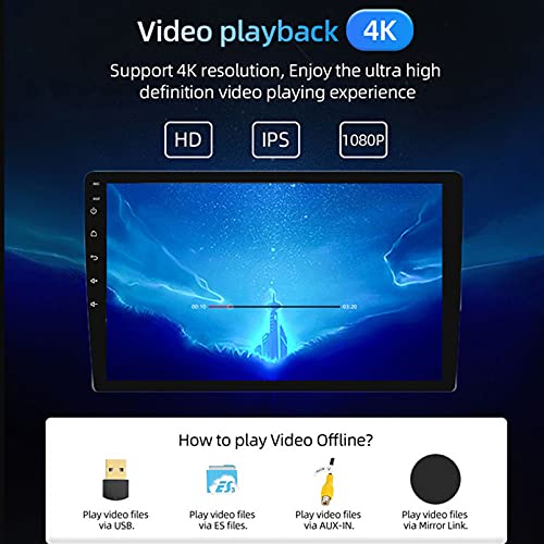 - ★ Reproductor multimedia de alta resolución: pantalla multitáctil capacitiva HD 2.5D, soporte de reproducción de video de 1024 * 600, puede disfrutar de la navegación por Internet y descargar sus aplicaciones favoritas en Google Mirror Link, lo que le permite a usted y a sus pasajeros ver sus películas favoritas en movimiento .